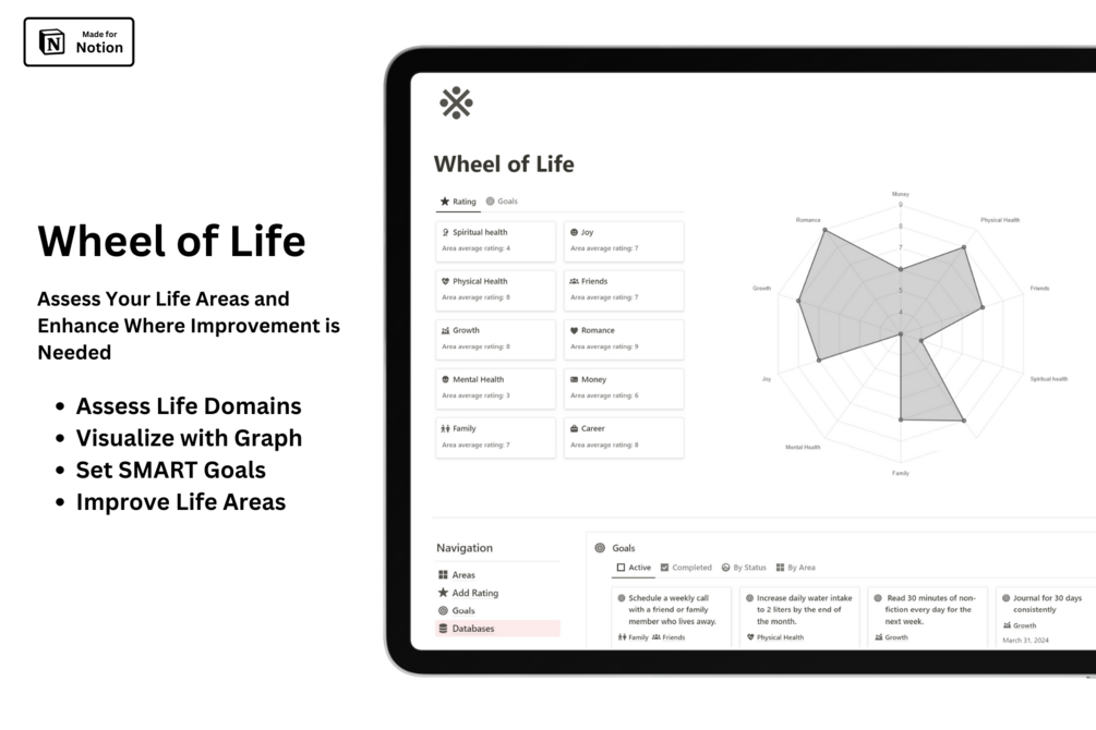 - Improve life areas: Take actionable steps to enhance low rated areas for growth and positive change.